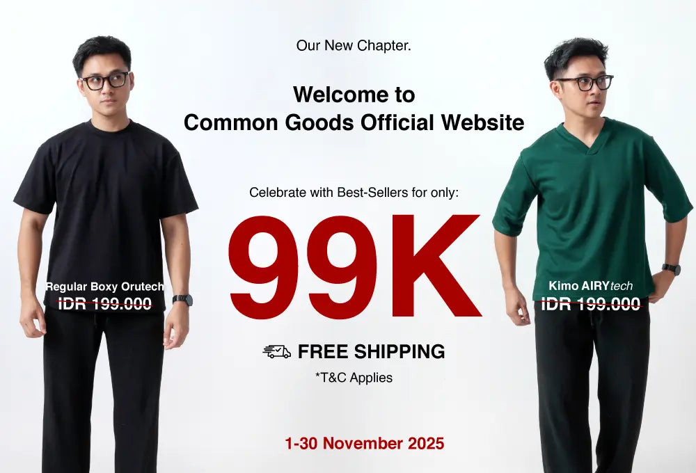 ![Regular Boxy Fit Short Sleeve Round Neck T-Shirt Series [OT]](http://commongoods.id/cdn/shop/files/2.RegularBoxyOrutechT-Shirt-Slide2-USP-Universal.webp?v=1758182280&width=533)
