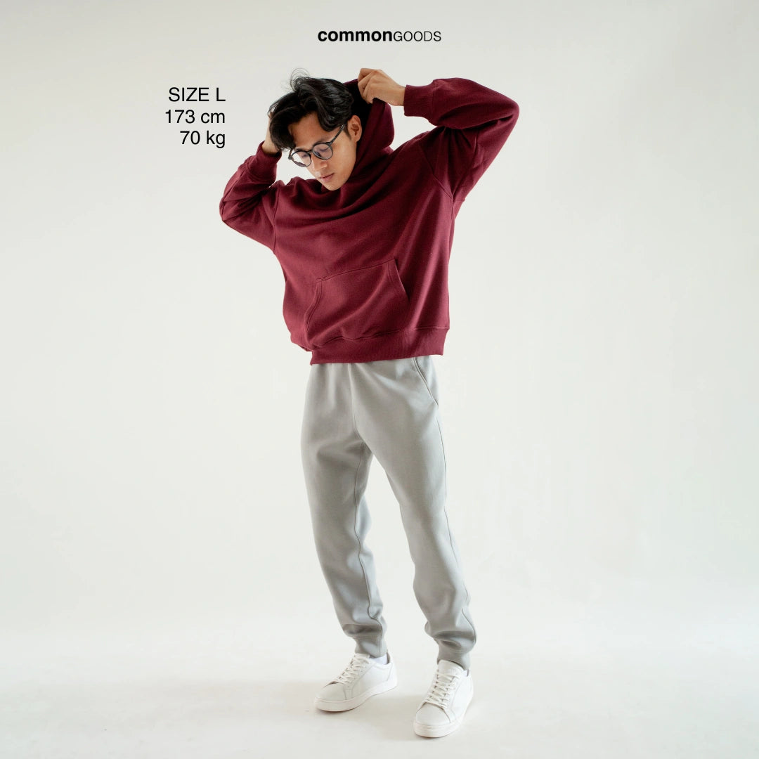 Hoodie Common Goods memiliki gramasi bahan 290-300 GSM yang cukup tebal tetapi sirkulasi udara yang sangat baik (sifat Cotton). Jadi dipastikan tidak akan panas, karena terbuat dari 75% Cotton. Tekstur bahan pun menjadi sangat lembut dan sulit untuk lecek.